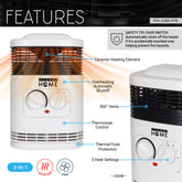 360 degree Ceramic Heater with Safety Tip-Over Shutoff and Overheat Protection