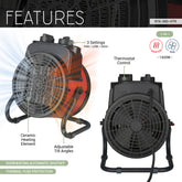 Electric Forced Air Heater with Ceramic Heating Element and Adjustable Tilt