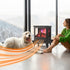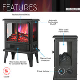 The heater's three-sided viewing windows offer a wide view of the realistic flame effects, adding charm and atmosphere—even without the heat. Built-in overheat protection ensures safe operation with automatic shutoff, making this fireplace heater both stylish and secure.