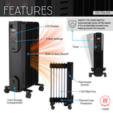 Oil Space Heater with Remote Control, Portable Radiator Heater with 7 Oil-Filled Fins Indoor Uses, 3 Heat Settings, Thermostat, Tip-Over Protection