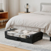 Tired of clutter and looking for a convenient way to store your belongings? Our underbed storage container with wheels is the perfect solution for keeping your home neat and organized. Designed to assemble in seconds and utilize the space under your bed to store shoes, clothing, bedding, and more, these large storage containers provide ample space while maintaining a compact design. Equipped with low-profile multidirectional wheels, these under-the-bed storage containers make it easier than ever to access your belongings. The transparent zippered cover allows for easy visibility, ensuring you can quickly access your stored items without hassle. Whether you're looking to create underneath-bed shoe storage or a multipurpose underbed box storage, this organizer is a must-have for your home.