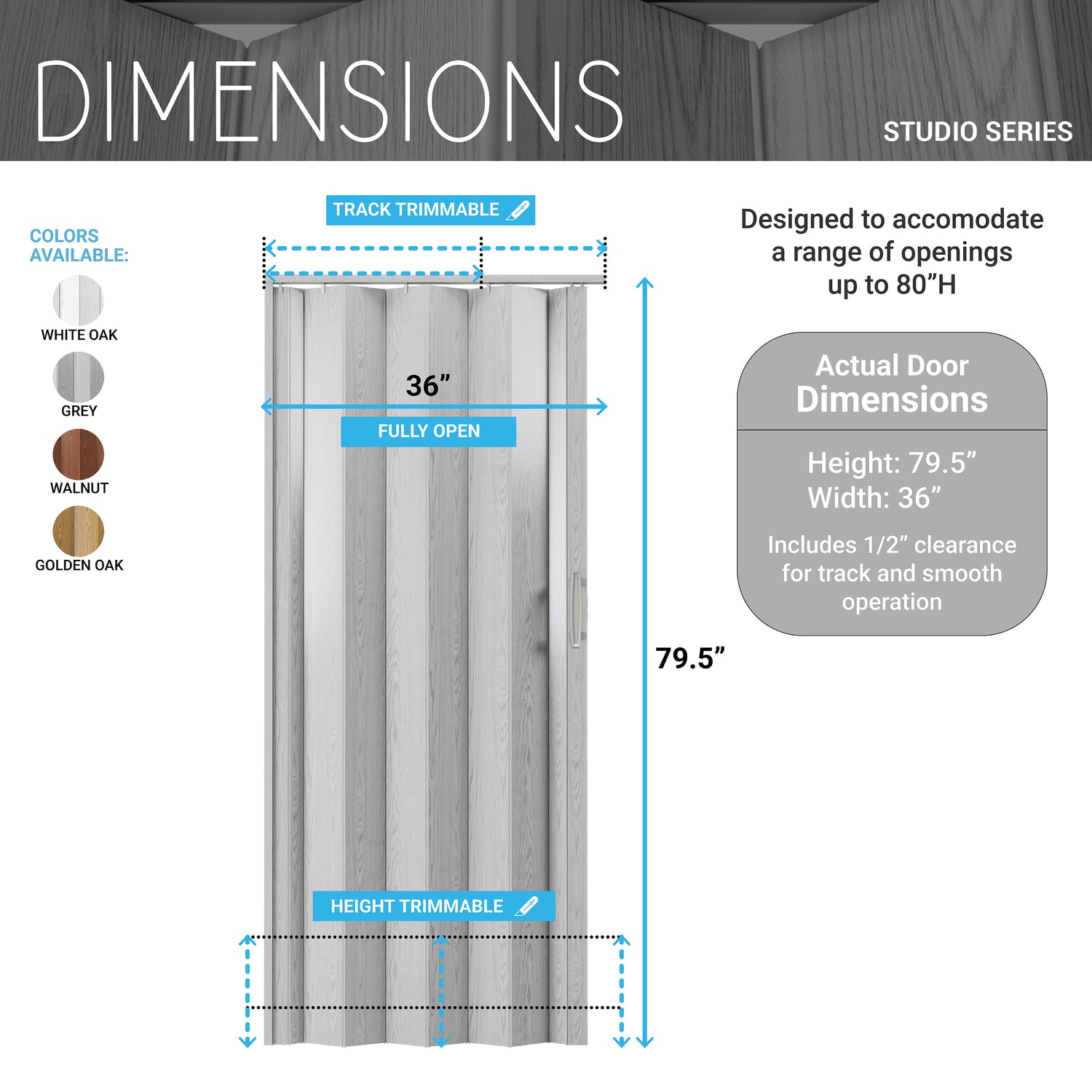 Studio Series 36" PVC Foldable Accordion Doors